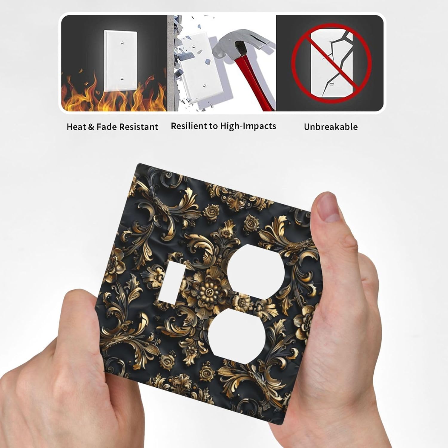 Decorative Outlet Covers Rococo Vintage Black Golden Leaf Morris Vine 2 Gang Wall Plate Cover Single Toggle Duplex Combo Two Switch Light Switch Cover Plate Jumbo Dual GFCI Faceplate