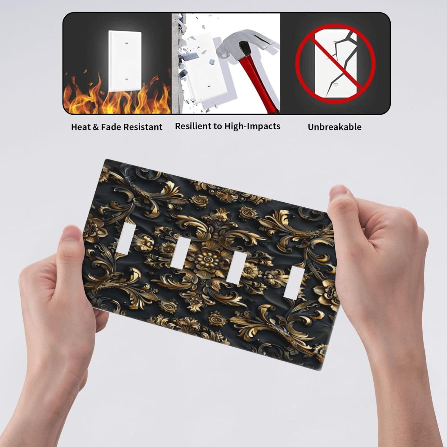 Decorative Switch Covers Plate Rococo Vintage Black Golden Leaf Morris Vine 4 Gang Artistic Wall Plate Unique Quad Toggle Light Switch Plate Jumbo Faceplate for Bedroom Home Decor