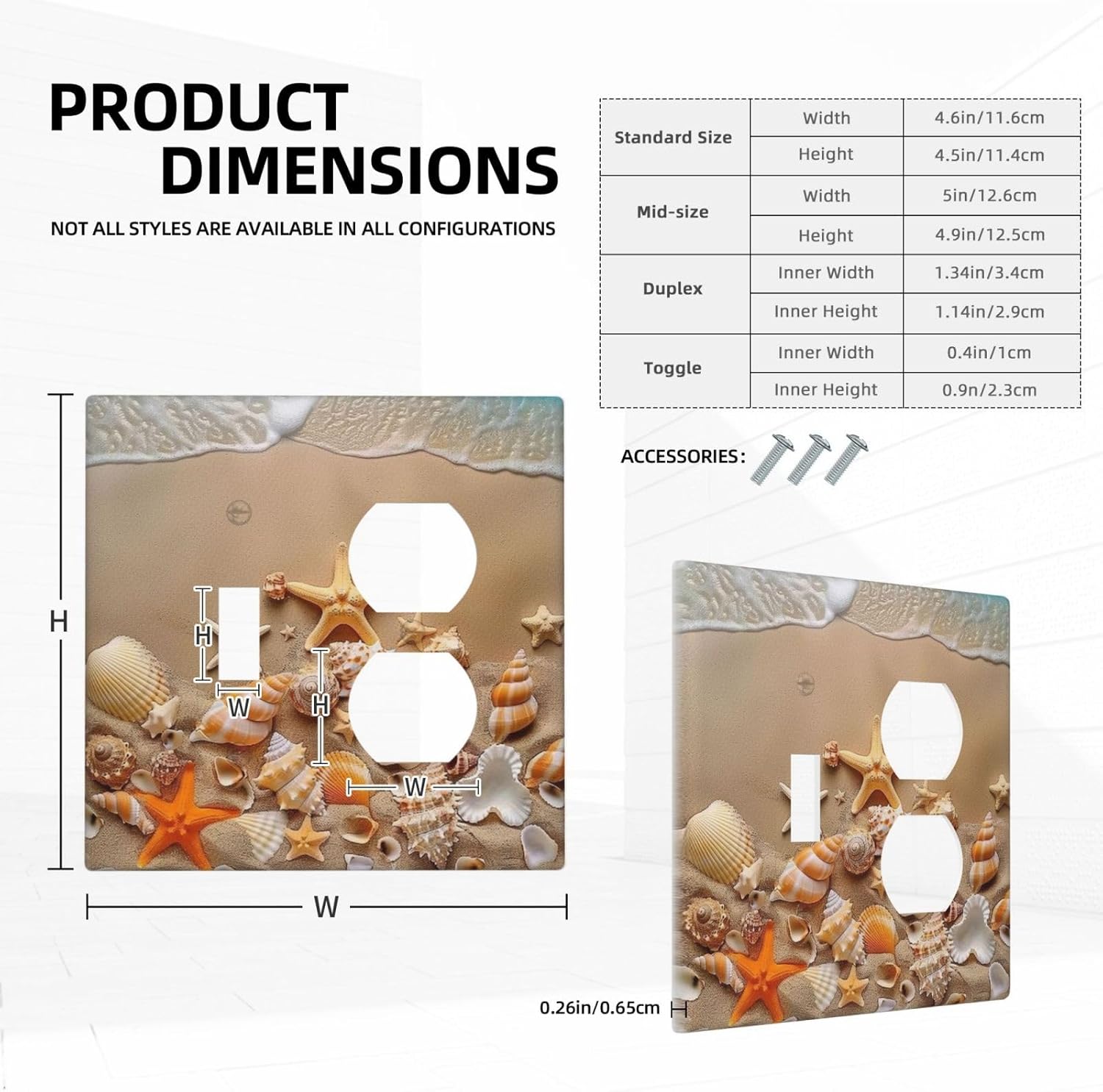 Decorative Outlet Covers Beachy Sea Ocean Seashell Starfish 2 Gang Wall Plate Cover Single Toggle Duplex Combo Two Switch Light Switch Cover Plate Jumbo Dual GFCI Faceplate