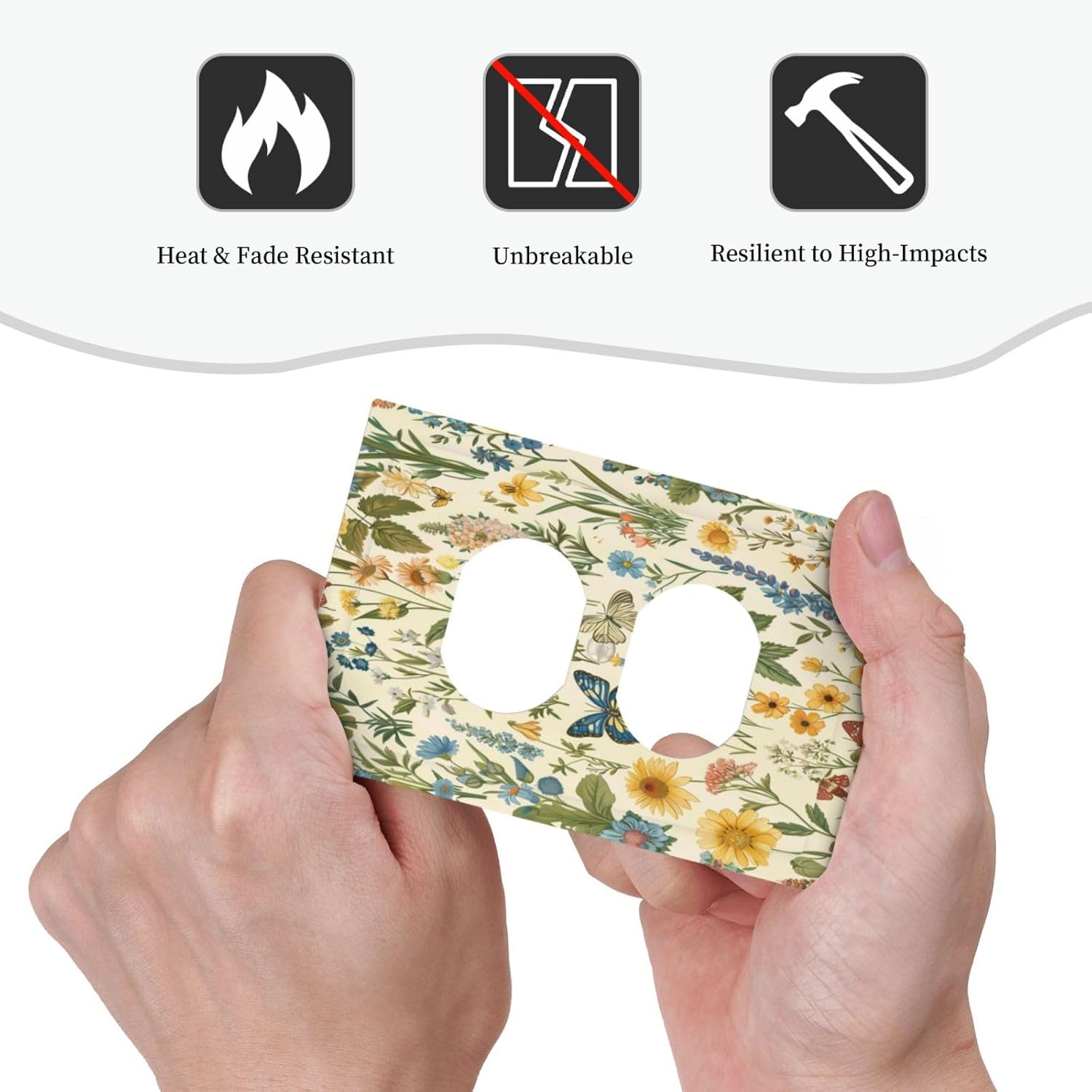 Decorative Outlet Covers Rustic Plant Garden Leaf Flower Butterfly 1 Gang Duplex Light Switch Cover Plate Wall Plates for Electrical Outlets Switchplate Faceplate for Bedroom Home Decor