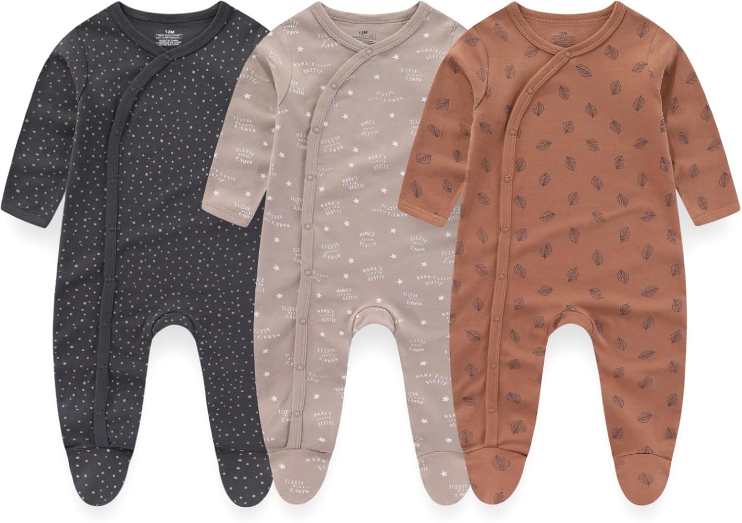 • What You Get:3-Pack footed pajamas,5-Pack bodysuits,5-pack pants,and 5-Hats,5-Mittens,5-socks set. Please refer to:the first image of the option you selected.please check the size chart before order.