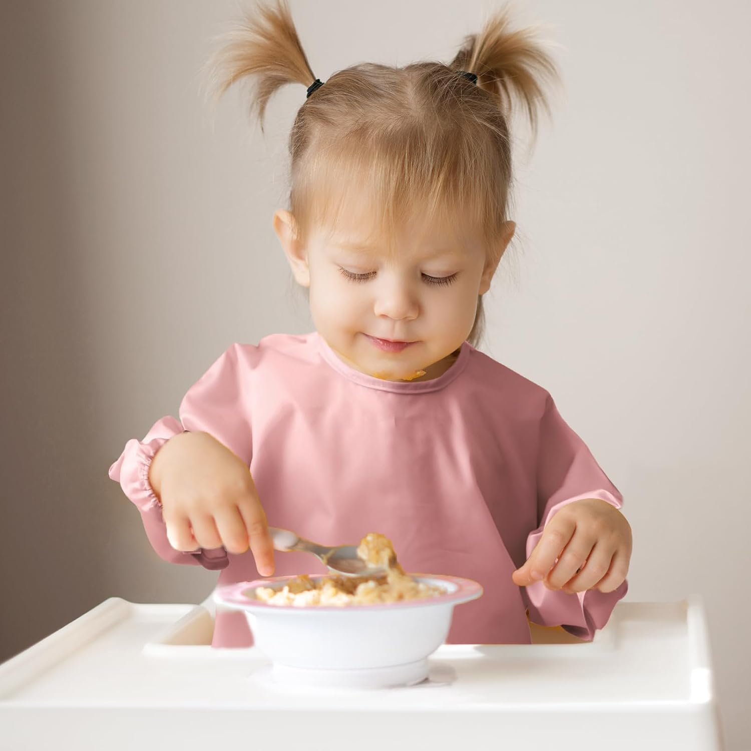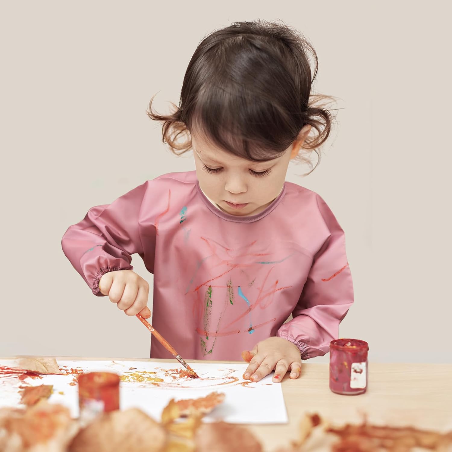 • Fits 6-24 Months - These long-sleeve baby bibs feature an adjustable neck strap and a back tie closure for a perfect fit. Elasticized cuffs allow for customizable sleeve length, making them ideal for babies and toddlers aged 6 to 24 months to paint or eat independently.