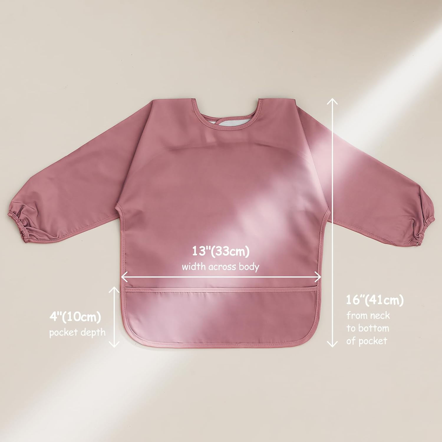 4 Pack Long Sleeve Bib, Waterproof Sleeved Smock for Baby Boy or Girl, Reusable Bib with Pocket, Ages 6-24 Months