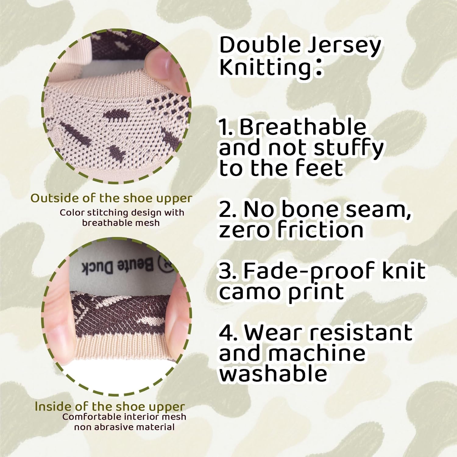 • Bold Style, Seamless Comfort:Double-sided knit design: rugged camo exterior for confidence, smooth interior for irritation-free wear. No bulky seams or pressure points. Let kids flaunt their personality while enjoying sock-like softness all day long.