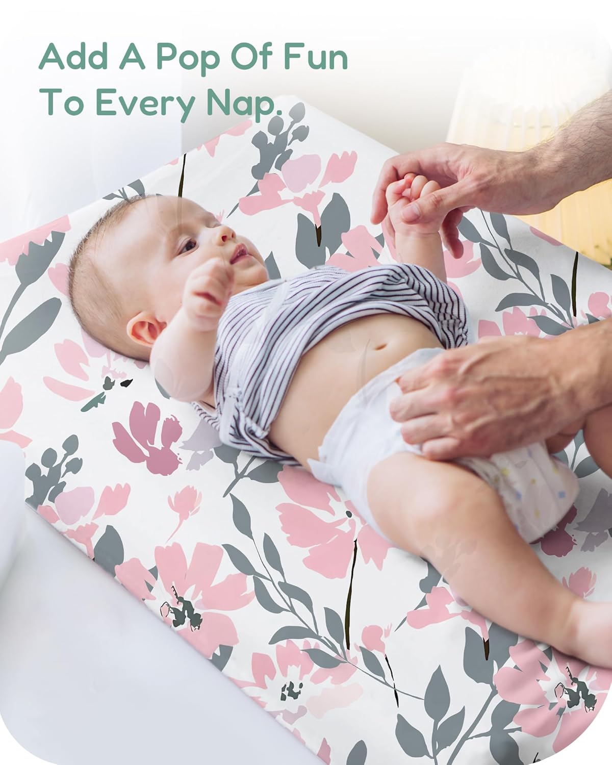 • Secure 360-Degree Elastic Fit: Designed with fully encased 360-degree elastic, this baby changing pad cover fits snugly around your changing pad, preventing slipping or shifting during diaper changes, providing a stable and secure surface for your baby.