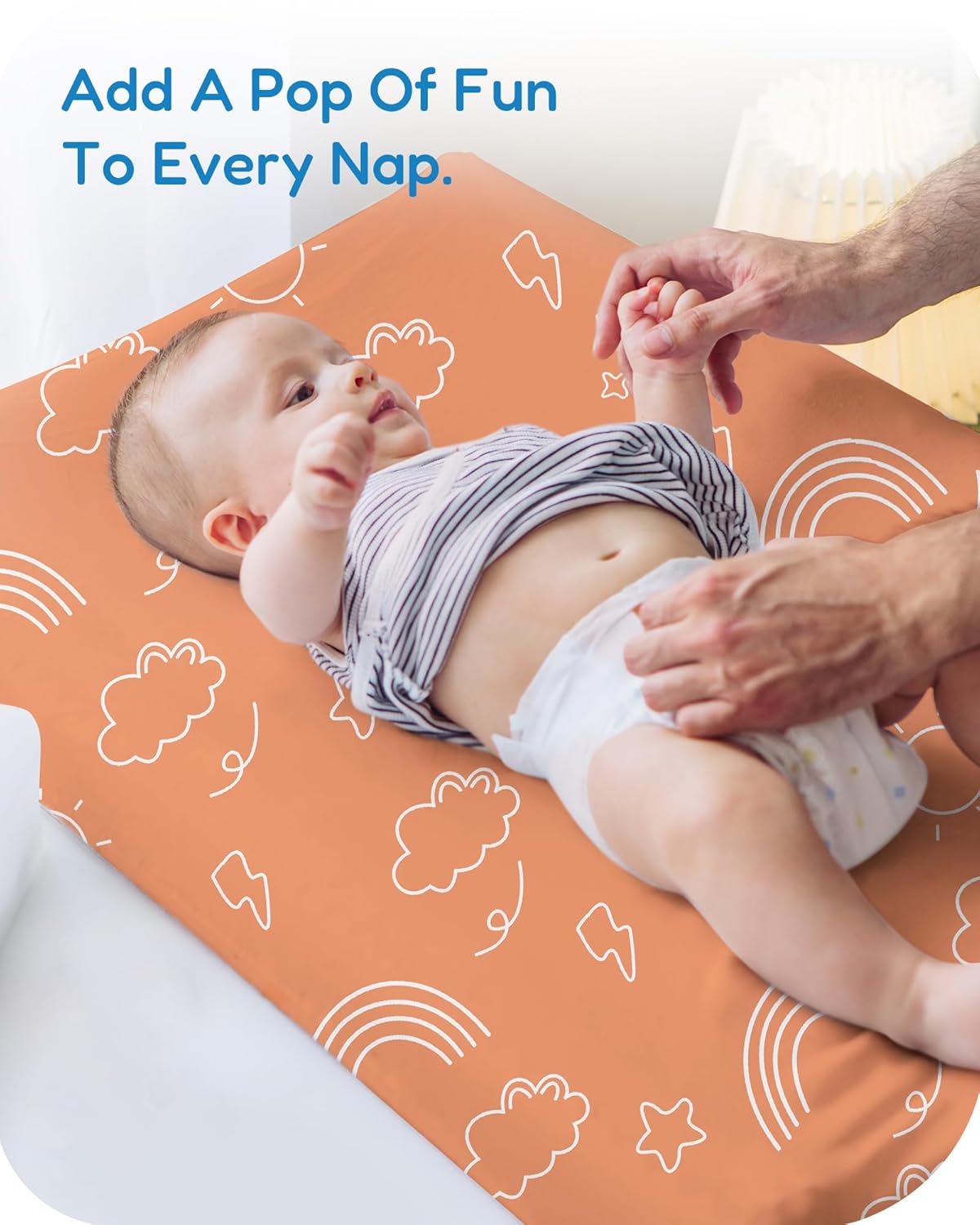 • Secure 360-Degree Elastic Fit: Designed with fully encased 360-degree elastic, this baby changing pad cover fits snugly around your changing pad, preventing slipping or shifting during diaper changes, providing a stable and secure surface for your baby.