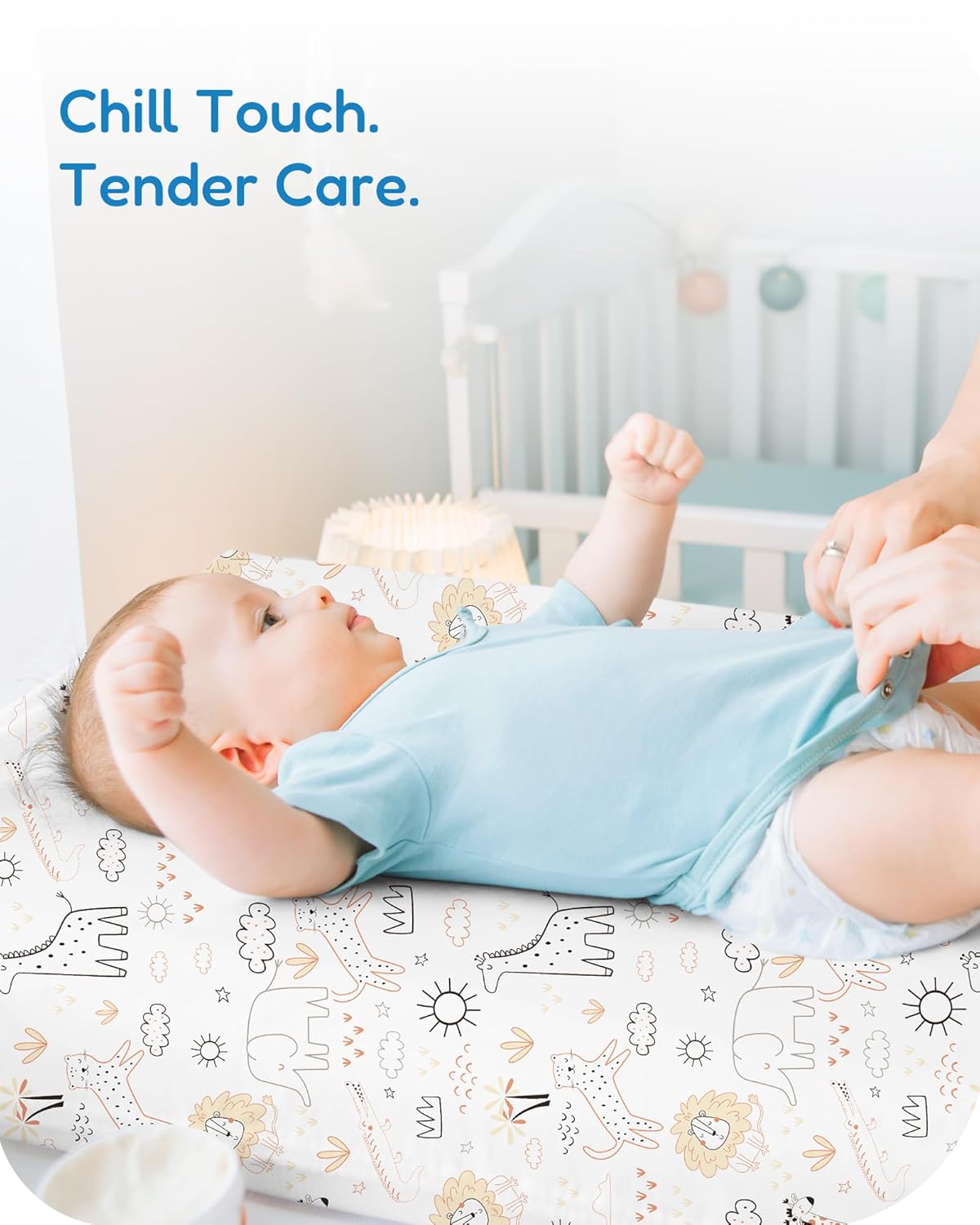 • 2-Color Design: This TotChill changing pad cover set features two adorable colors, perfect for both boys and girls. Designed to fit standard changing pads (32” x 16” x 5”), it adds a cute touch to your baby’s space.
