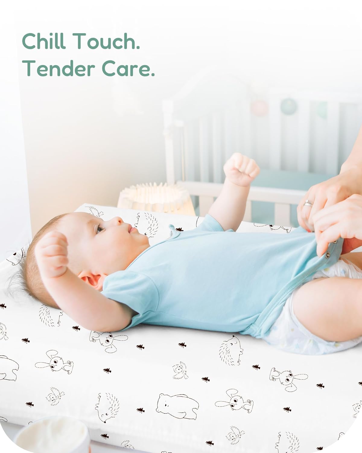 • Secure 360-Degree Elastic Fit: Designed with fully encased 360-degree elastic, this baby changing pad cover fits snugly around your changing pad, preventing slipping or shifting during diaper changes, providing a stable and secure surface for your baby.