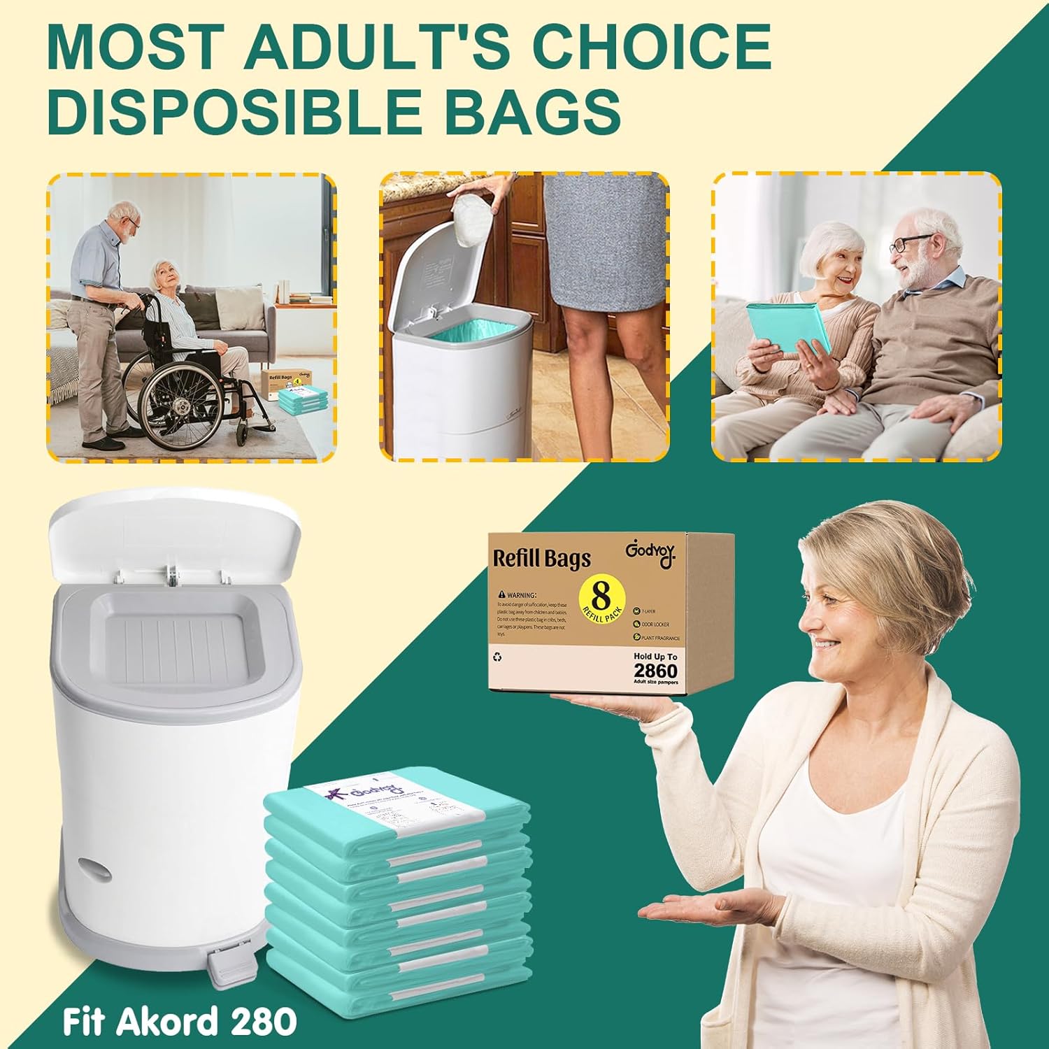 • 【Compatible with Janibell Akord 280 Slim Diaper System】Our Adult diaper pail disposal liners refills compatible with Janibell Akord Diaper Disposal Slim Model, providing clean, quick, and hygienic disposal of adult diapers and say goodbye to mess and odors!
