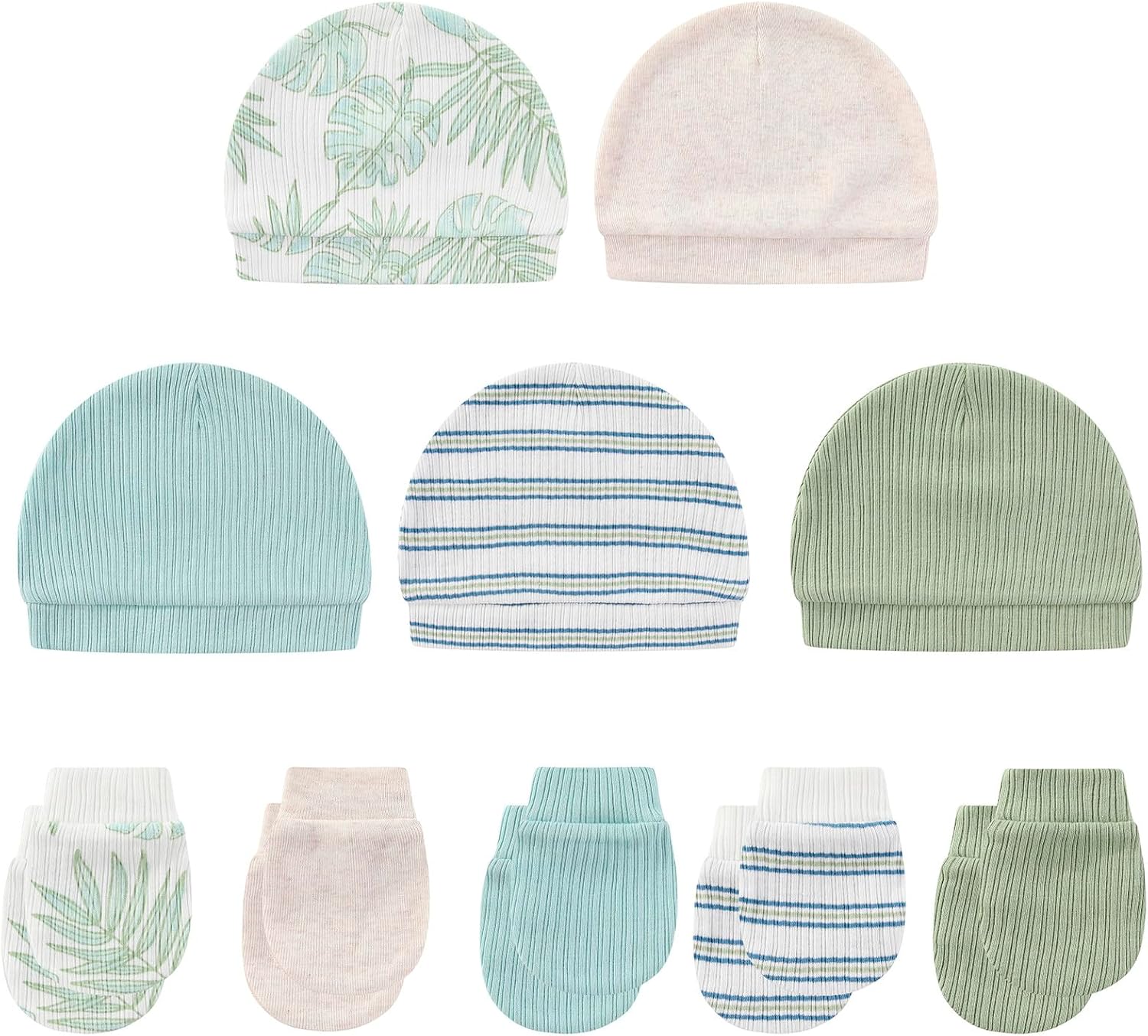 Baby Hat and Mittens Set Cotton Newborn Baby Hats Caps for Boys and Girls, 0-6 Months