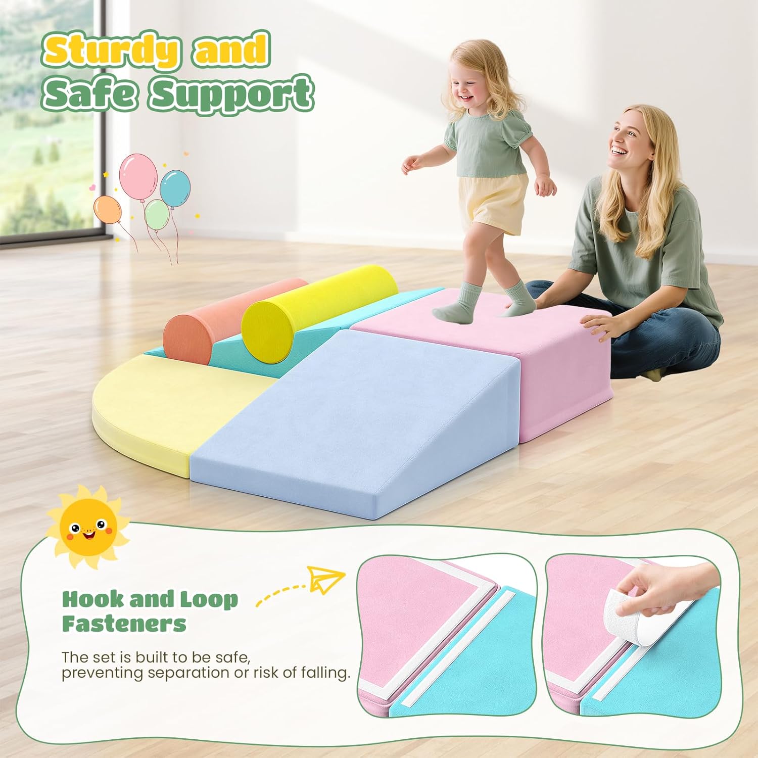 - 🧠 "Fun & Skill Development Combination" Our toddlers climbing toys have a variety of shapes and colors which capture children's interest and help them develop color recognition skills. Children can stack the blocks to learn about shape, and spatial relationships, helps your baby develop his intelligence