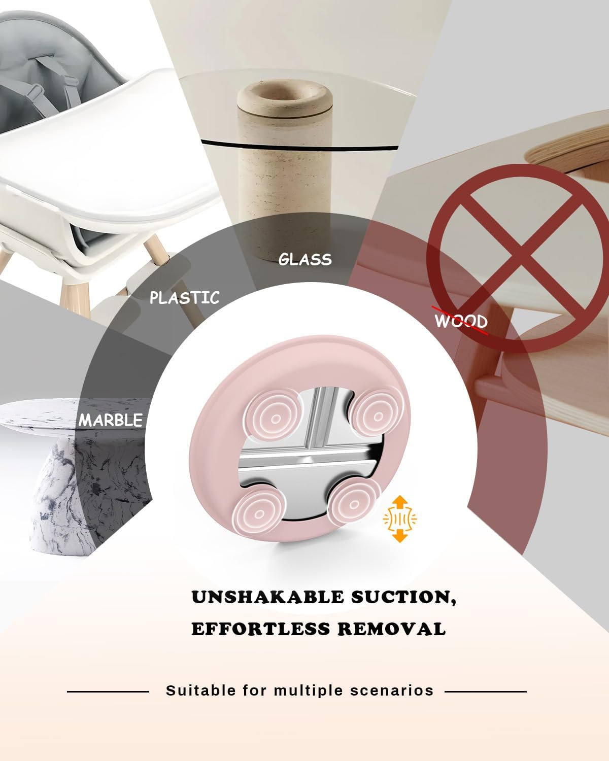 - High Chair & Stroller Ready: Compact 8" diameter specifically engineered to nestle securely in most high chairs, making restaurant outings and road trips 40% cleaner. Please measure your tray before purchase. Avoid rough wooden tables for optimal grip
