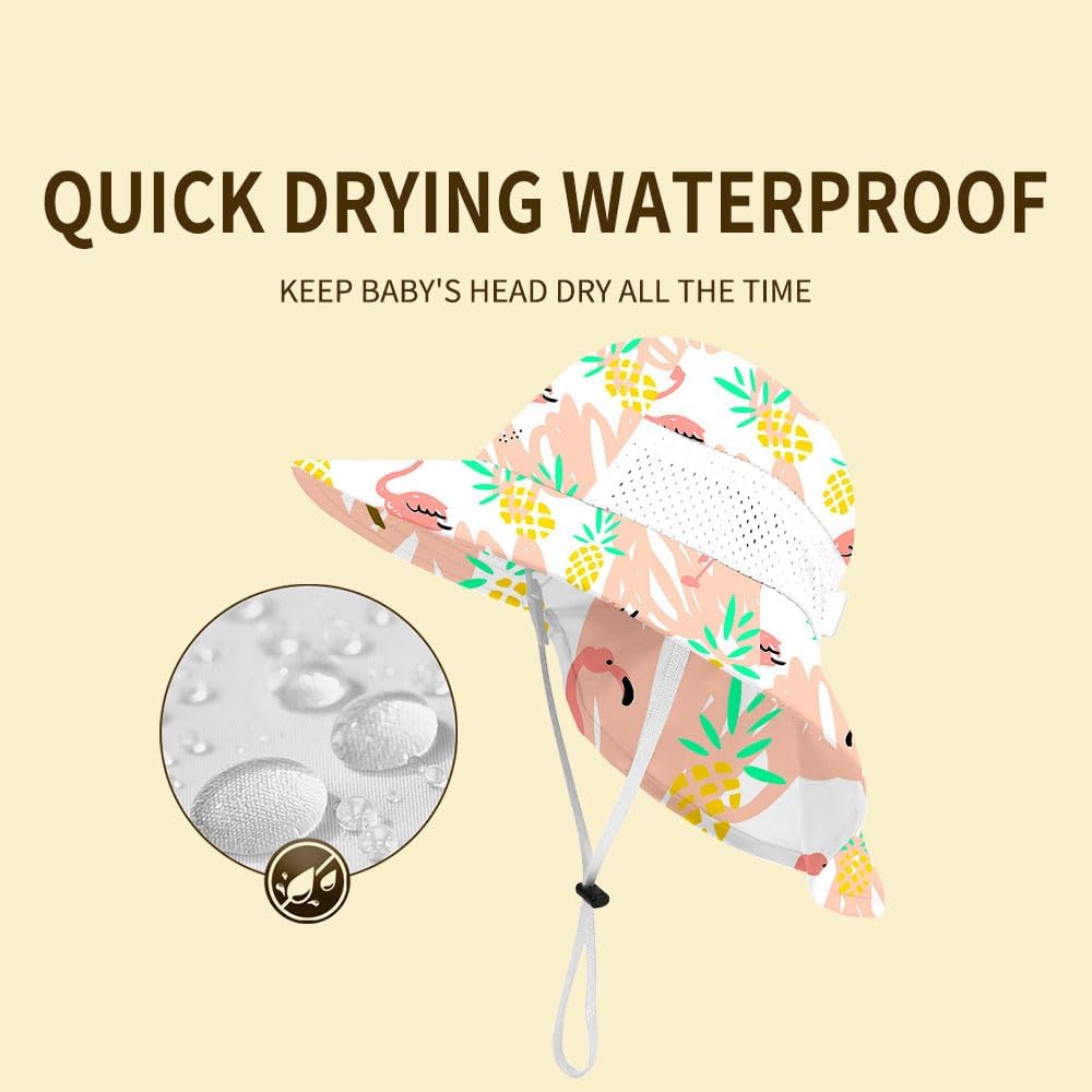• SAFETY RELEASE & ADJUSTABLE CHIN STRAP - Always put safety first. Emergency release will assist avoid a potentially fatal choking hazard. If you have a baby boy or girl who enjoys spending time playing outside, this sun hat for toddlers is your ideal choice! A good swim hat is a must for infant swimwear, add it to your list of essential baby gear to offer comprehensive protection to your baby’s delicate face and skins.