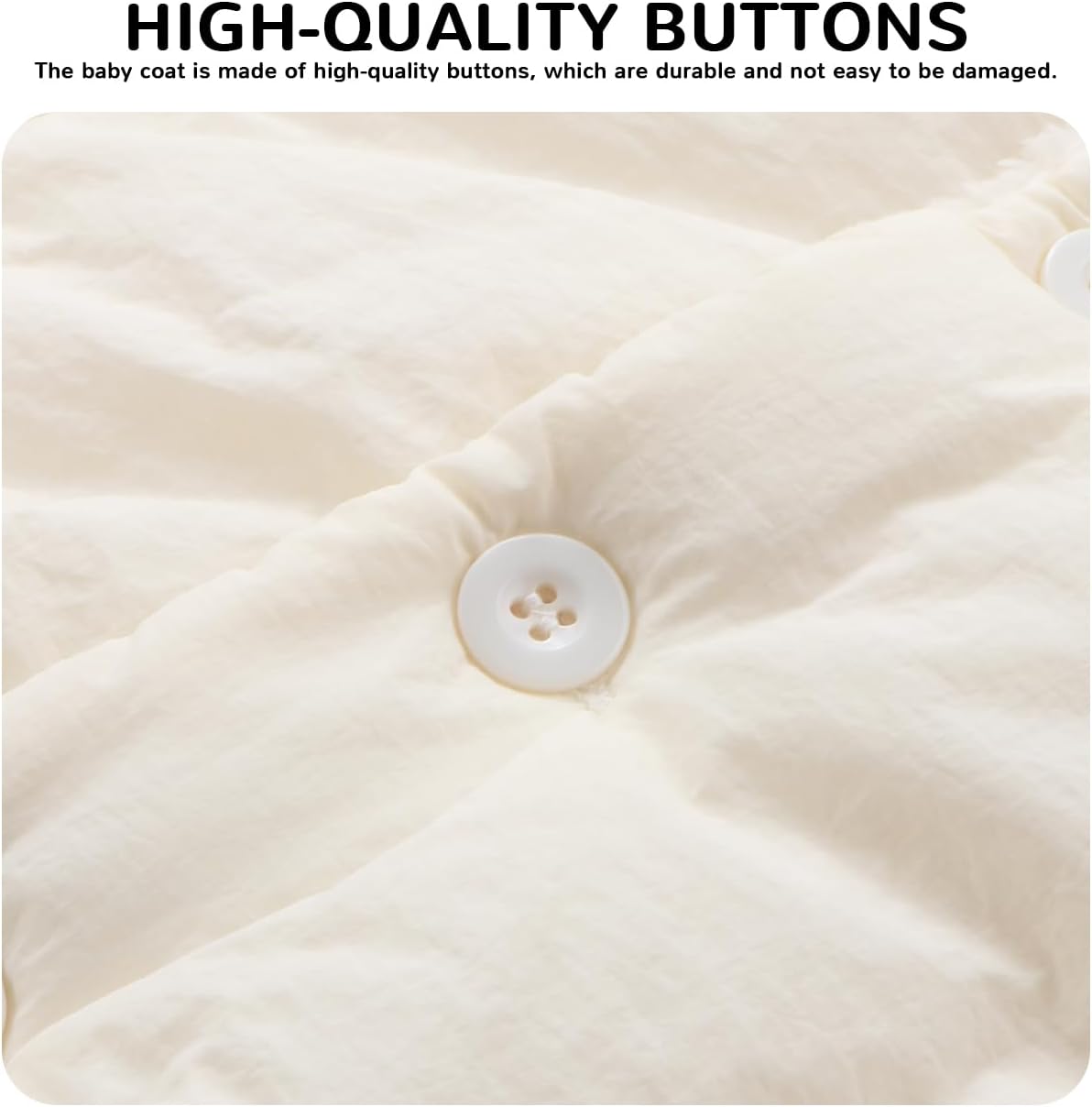 • Exquisite design: baby puffer with hood jacket adopts fashion design, hairball cap design makes the baby appear more cute, new button closure design,plush lining continues to provide warmth to baby, keep your baby full of vitality in winter