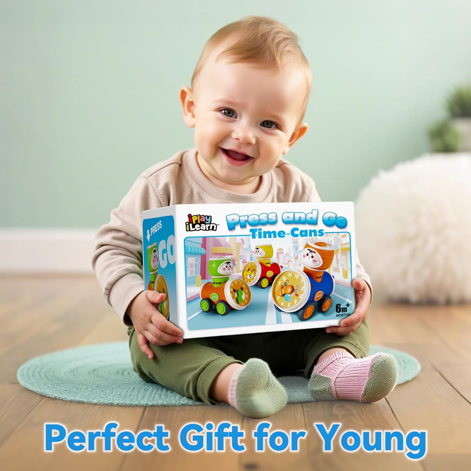 • Decorative Clocks — With bright colors and decorative clocks designs, our Press & Go car toy is sure to stimulate your child's curiosity and support their sensory and cognitive development.
