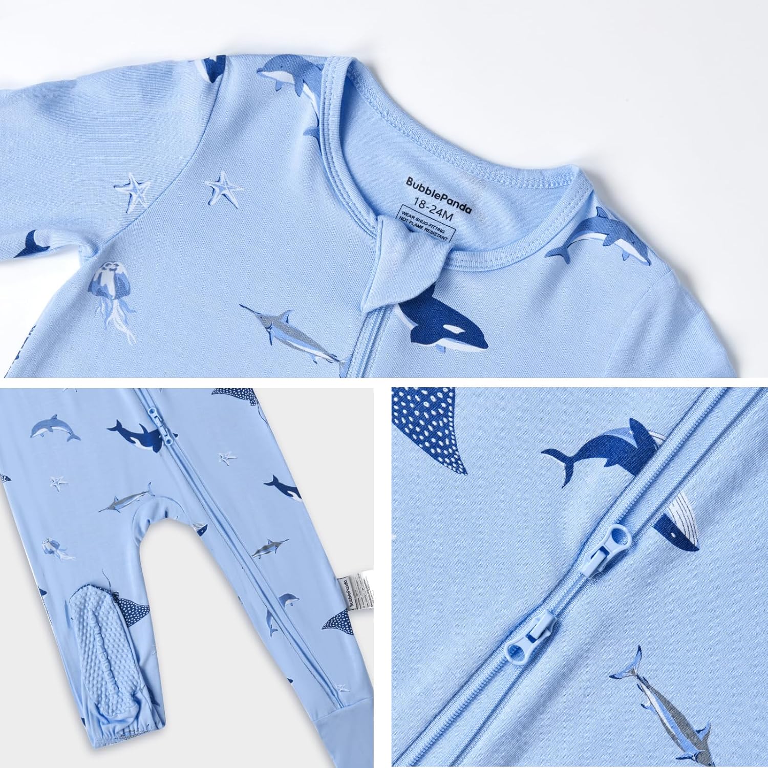 BubblePanda Rayon Made From Bamboo Baby Pajamas Baby Clothes for Boys Girls Unisex Zip-Front Non-Slip Onesie Sleeper