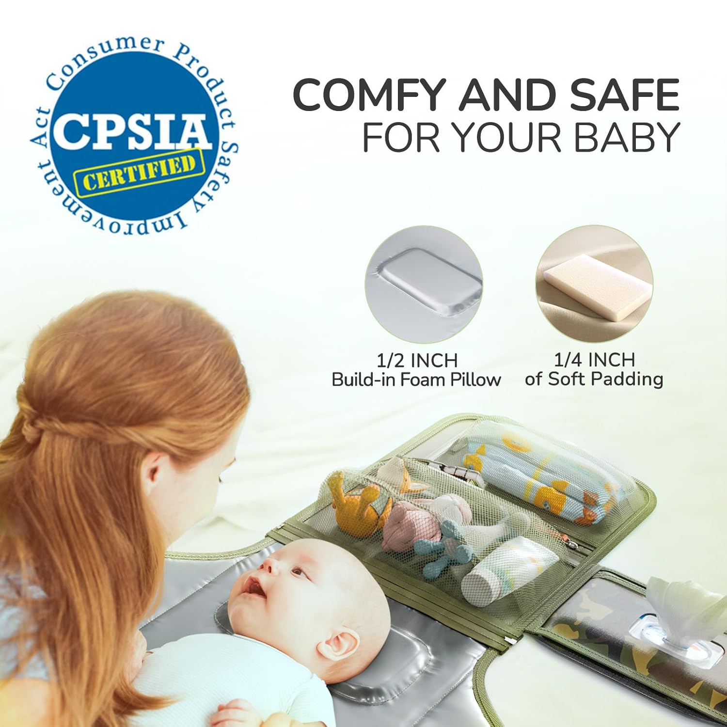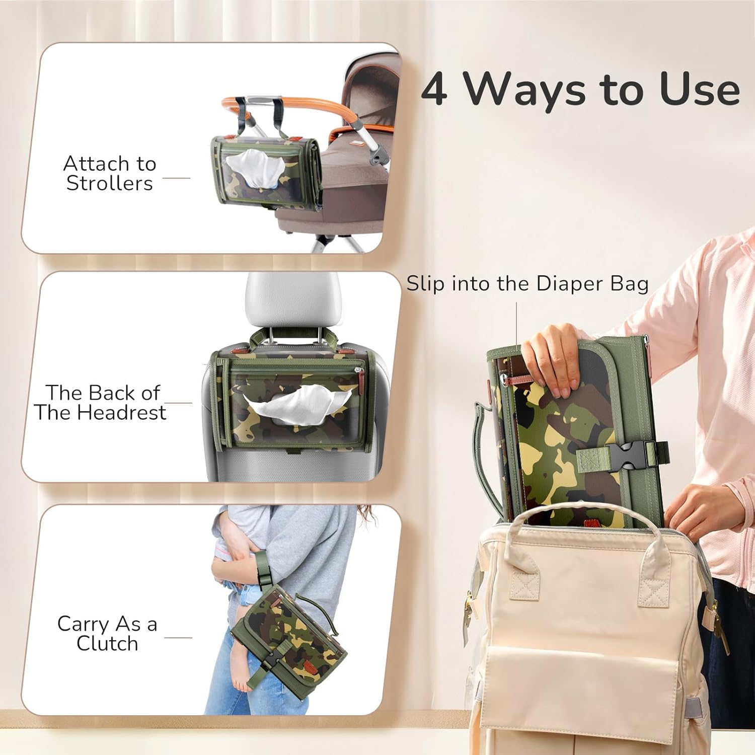 Portable Diaper Changing Pad for Baby, Detachable Travel Changing Pad with Baby Wipes Pocket, Gifts for Baby Shower, Newborn Girls and Boys (Green Camo)