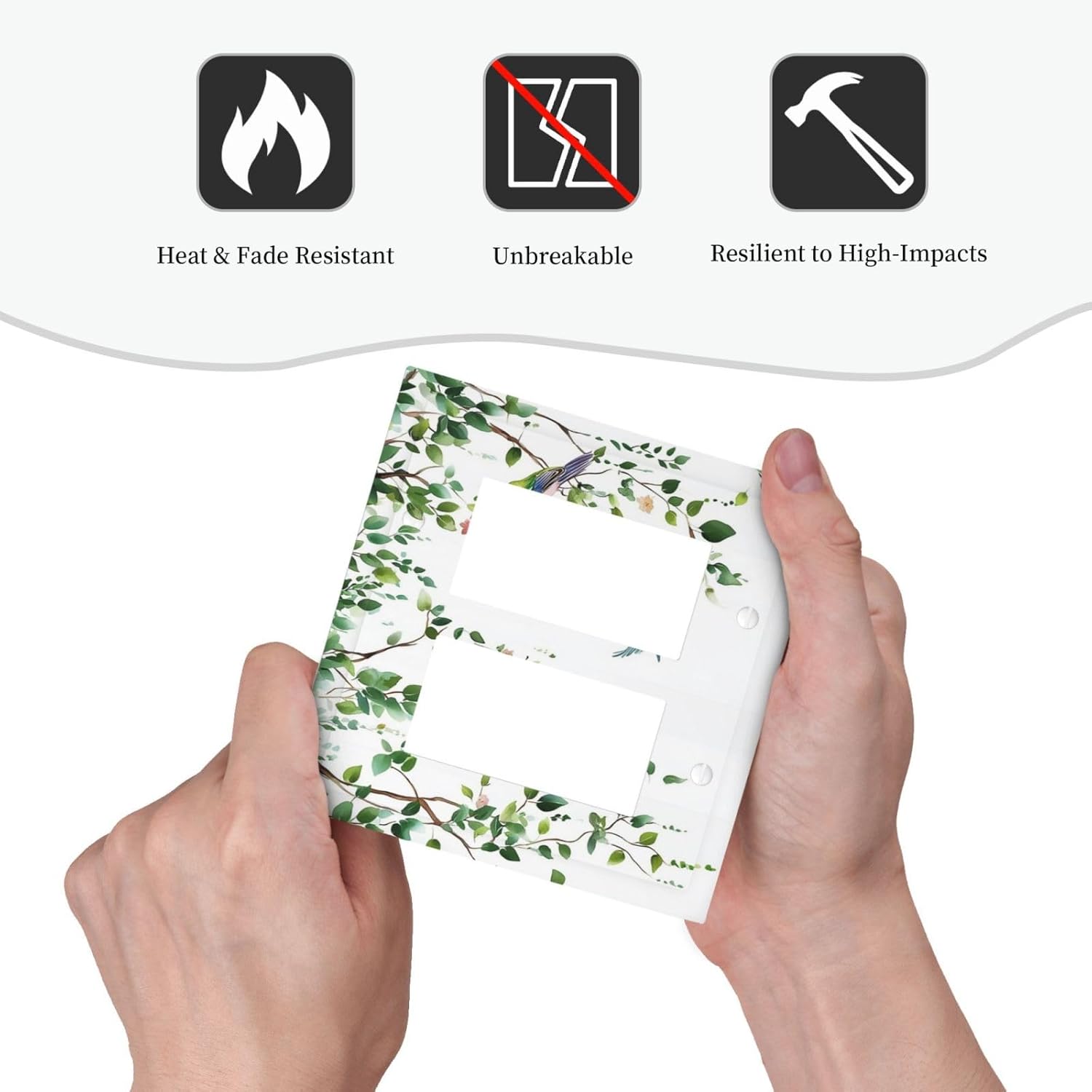 Decorative Outlet Covers Green Leaves Bird Eucalyptus Sage Plant 2 Gang Double Gfci Rocker Electrical Wall Panels Light Switch Cover Plate For Bed Room Living Room Decor