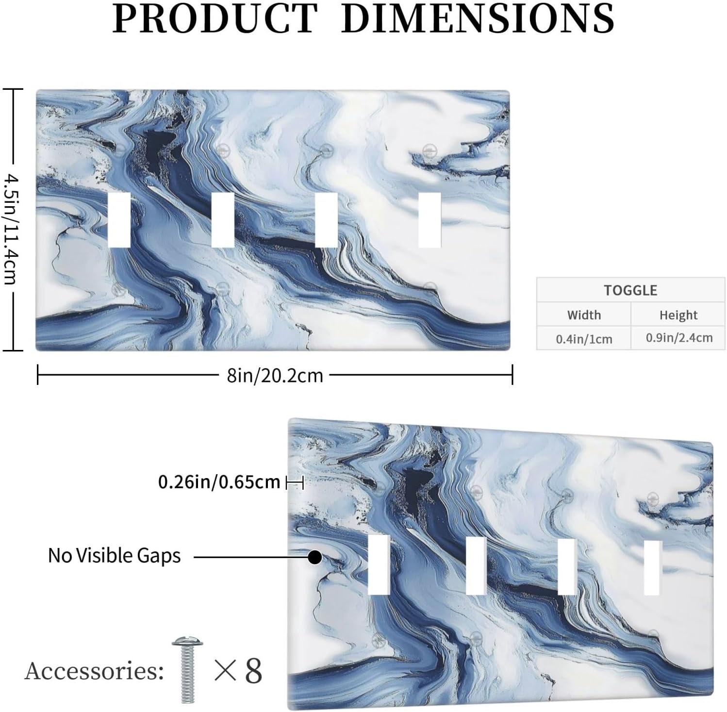 Light Switch Covers White Marble Navy Blue Line Fluid Quad Toggle Electrical Faceplate 4 Gang Wall Plate Decorative Switch Plates For Bathroom Kitchen Decor