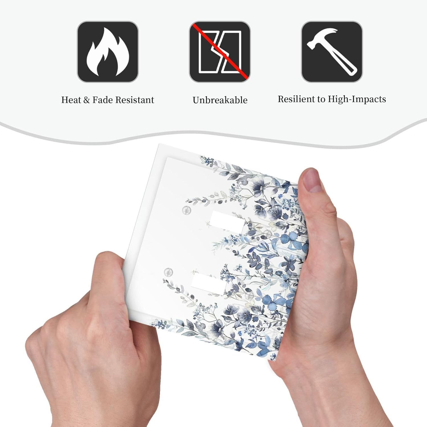 Decorative Switch Plates Light Blue Watercolor Leaves Plant With Floral 2 Gang Double Toggle Outlet Light Switch Cover Wall Plate Electrical Faceplate for Bedroom Bathroom Decor