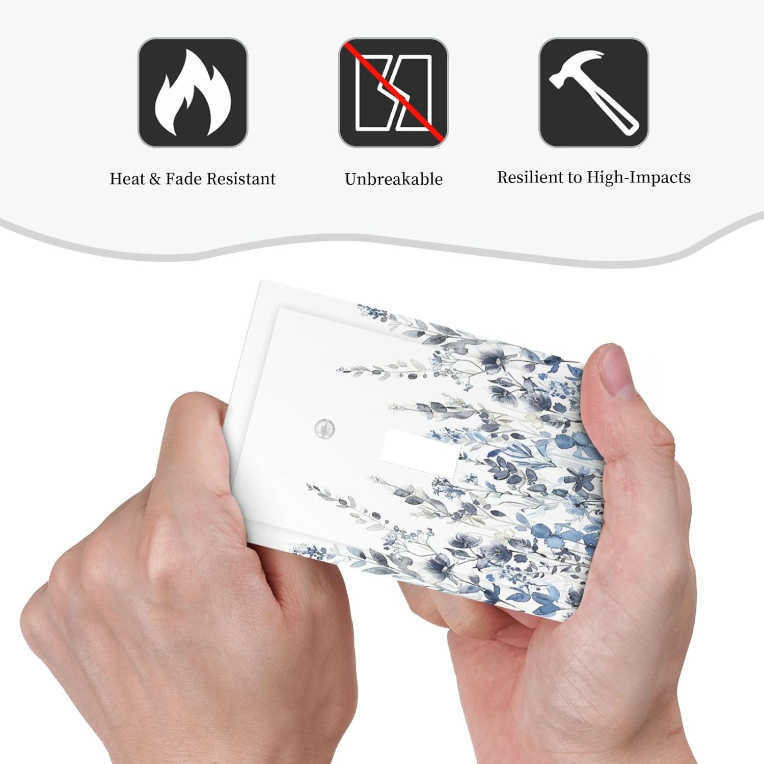 Decorative Light Switch Cover Light Blue Watercolor Leaves Plant With Floral 1 Gang Single Toggle Device Electrical Faceplate Switchplates Decorator Outlet Wall Plate for Bedroom Bathroom