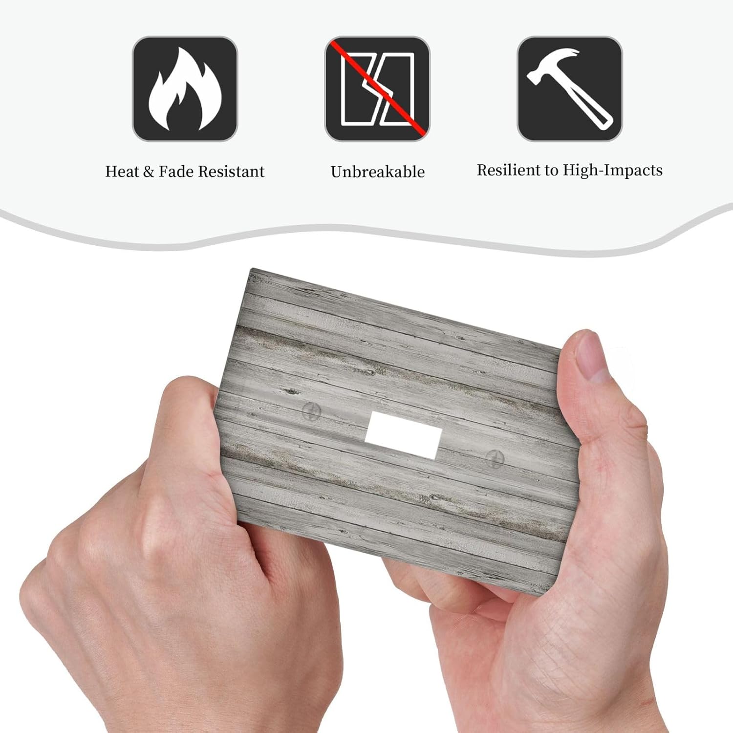Decorative Light Switch Cover Farmhouse Rustic Grey Barn Door Wood 1 Gang Single Toggle Device Electrical Faceplate Switchplates Decorator Outlet Wall Plate for Bedroom Cabin Decor
