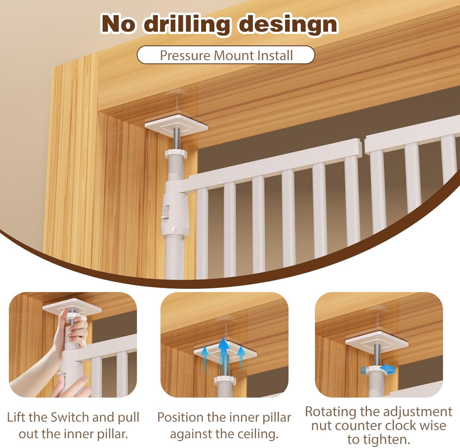• Innovative Installation - No Tools : Our pet door is equipped with 2 extendable support rods, simply extend the support rods to mount—no drilling or wall damage! Replacing traditional wall pressure installation, it is very suitable for renters and homeowners who want a sturdy barrier without permanent marks.