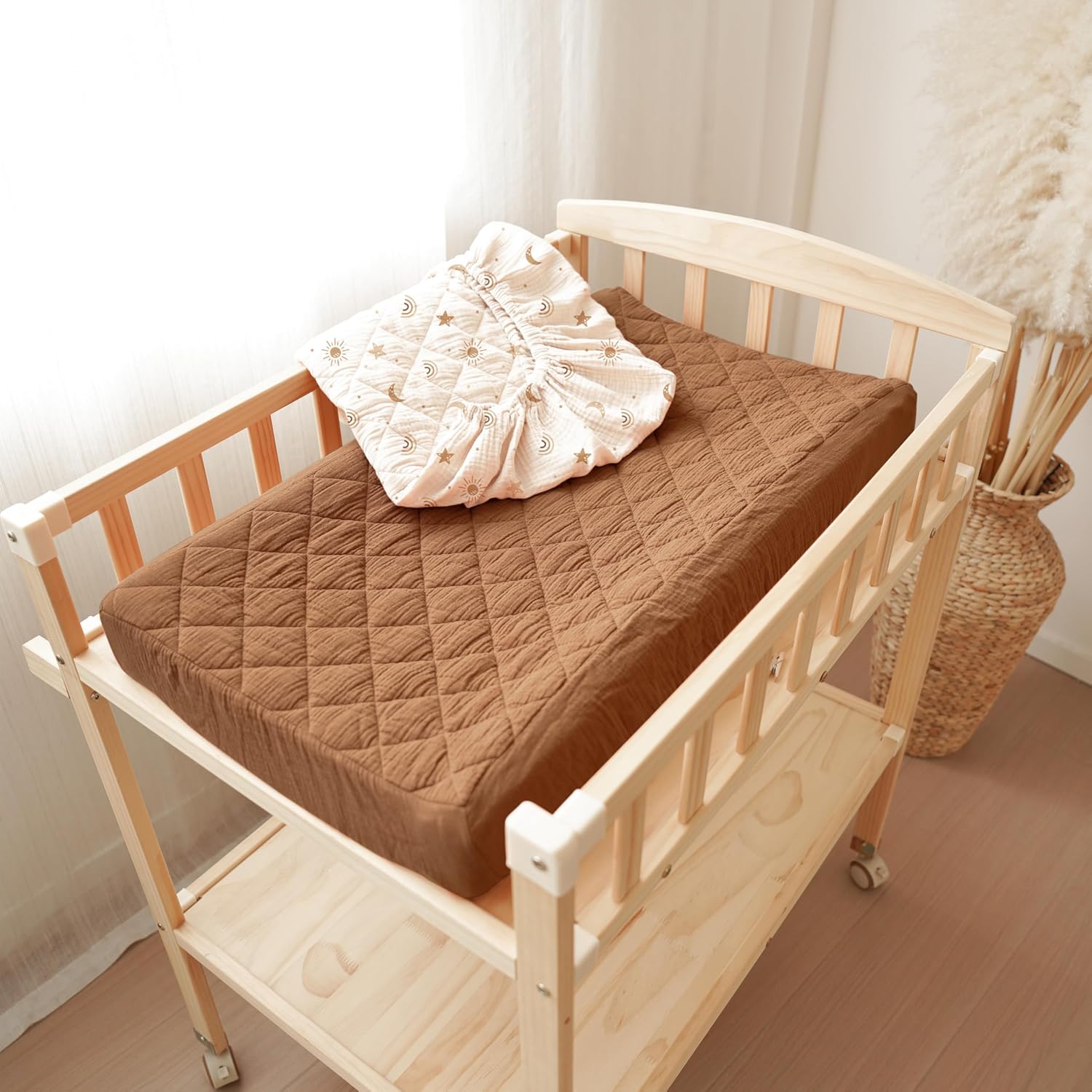 Konssy Waterproof Muslin Changing Pad Cover 2 Pack, Quilted Cotton Fitted Diaper Changing Table Cover, Soft Changing Pad Sheets for Girls Boys (Sunbeam Yellow,Coffice)