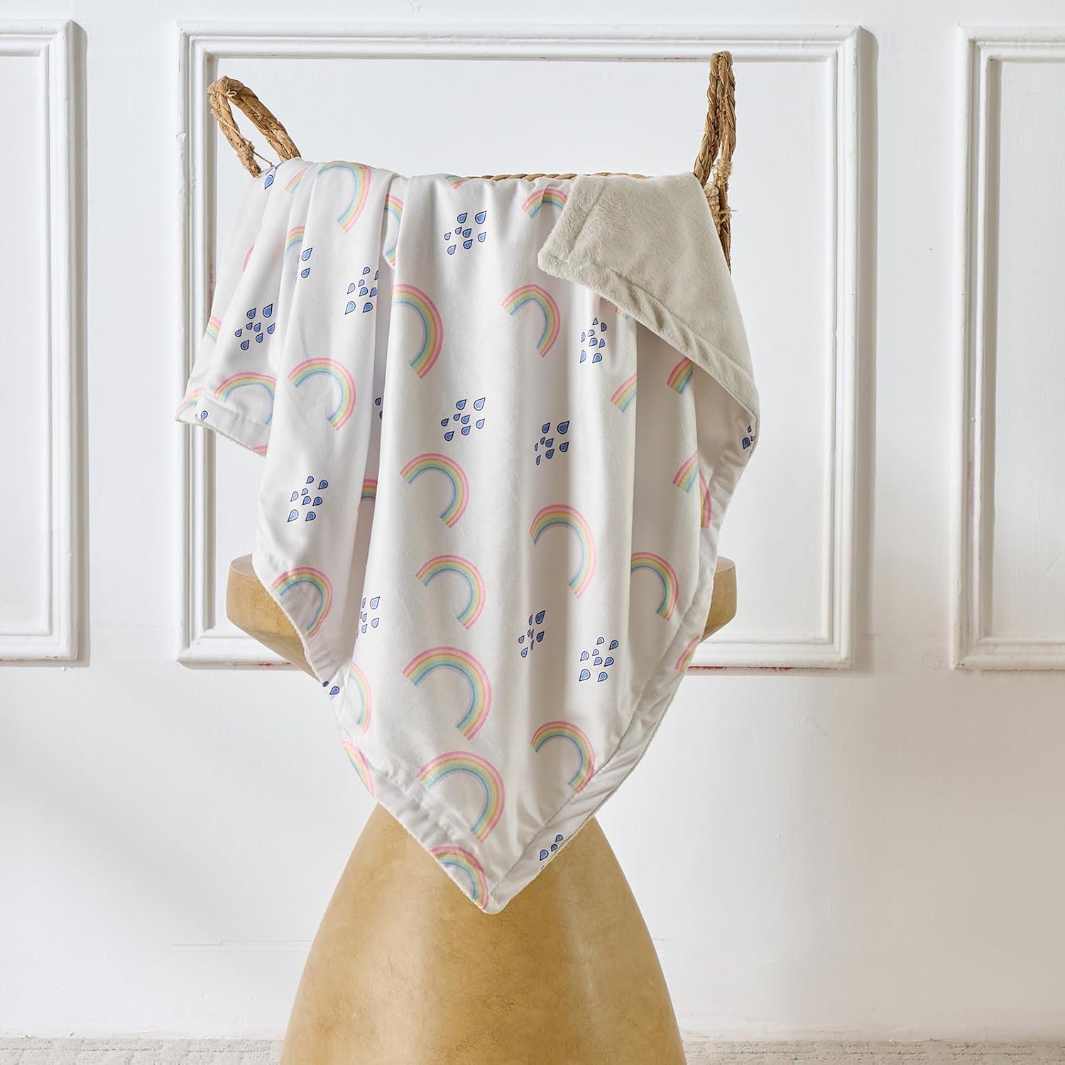 Baby Blanket 30x40 Inches Soft Double Layer Fleece Blanket with Sweet Rainbow Print Gender Neutral Crib Blanket for Infant, Toddler, Newborn Baby Girl or Boy Shower Gift