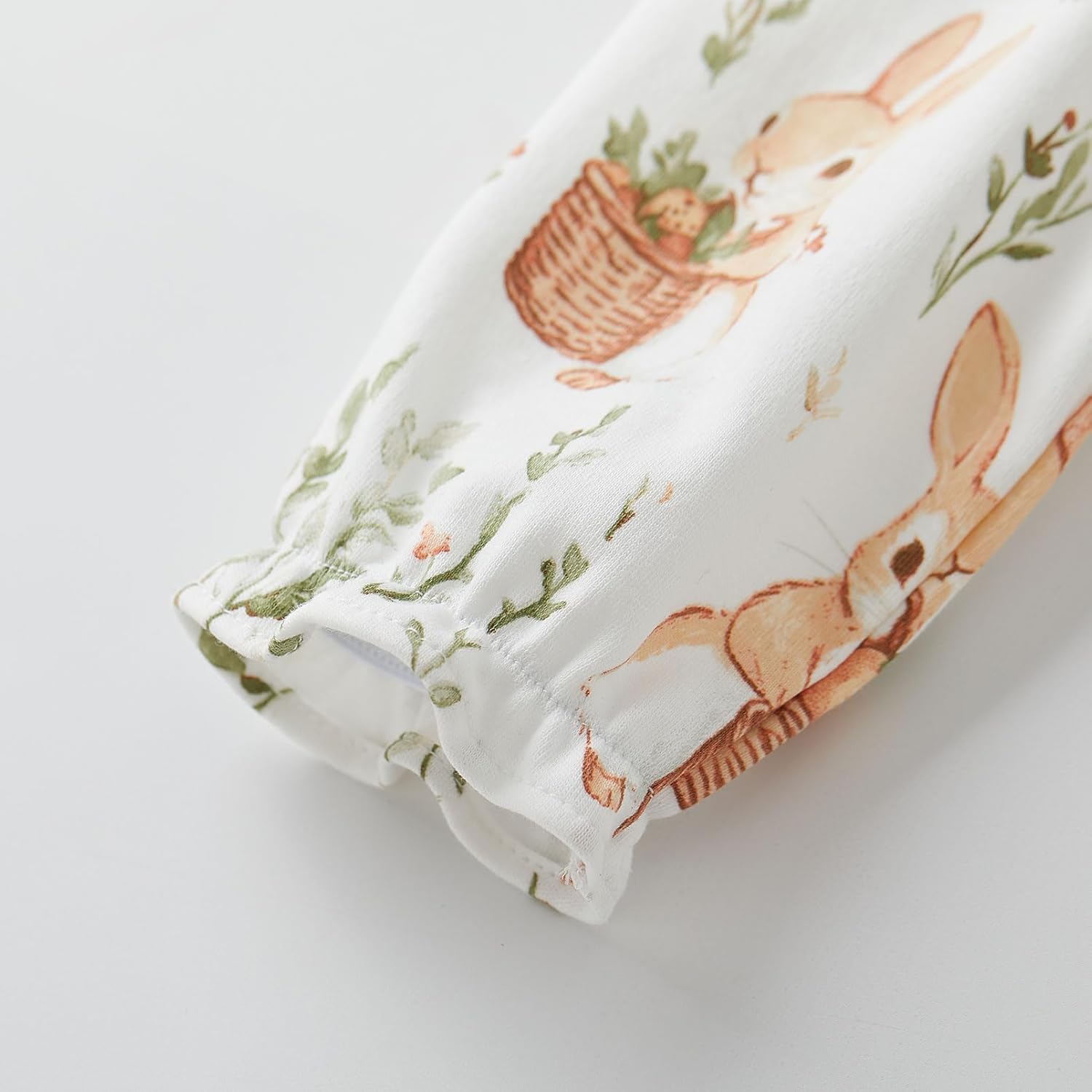 • FEATURES - Allover bunny pattern prints, peter pan collar, long sleeve, elasticized ruffled cuffs, with these adorable designs, your baby will get tons of compliments on it