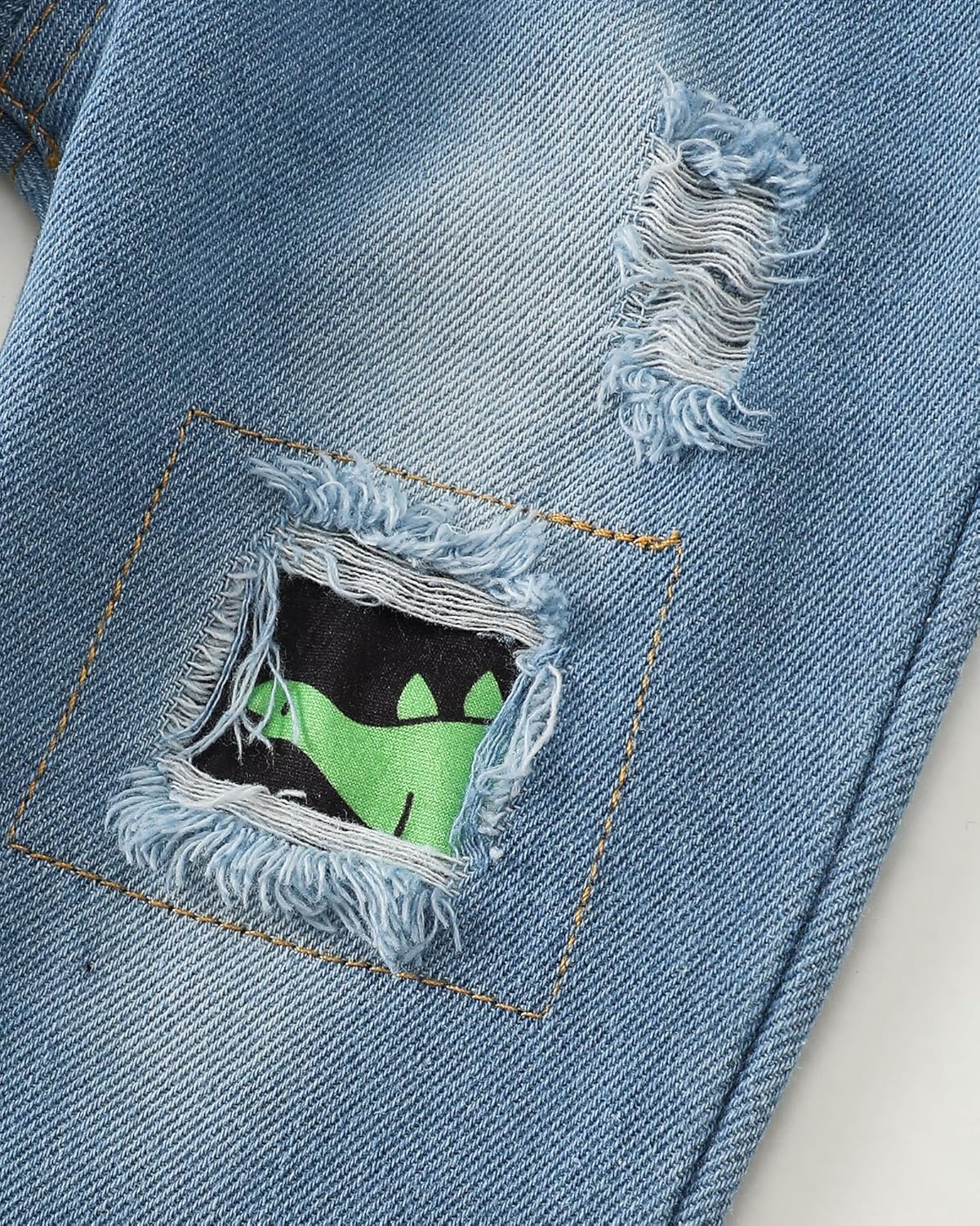 • Design: Toddler baby boy outfits denim autumn and winter clothing, featuring dinosaur patterns on the top, classic ripped toddler boy jeans, and two pockets, fashionable and handsome!