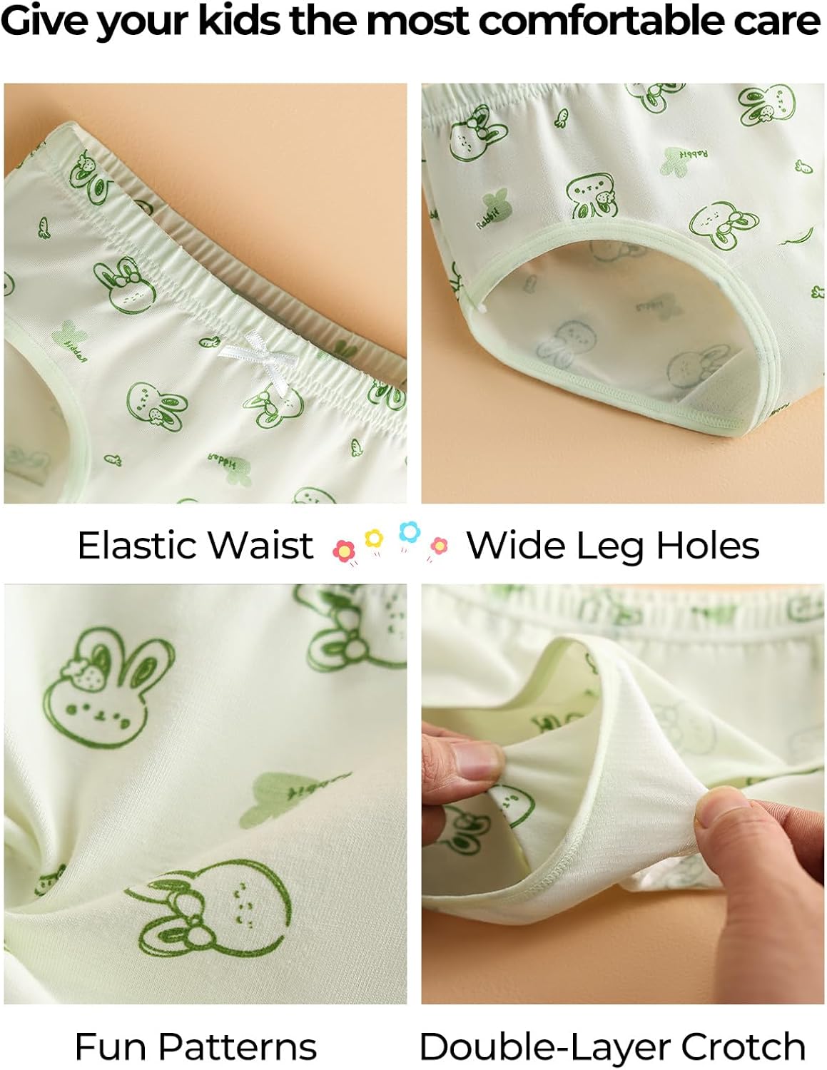 • Classic Brief Fit: Little girls cute panties, comfort covered fabric waistband, covered leg bands with no-pinch elastic prevent chafing during play, fitting comfortably on all body types – from active toddlers to growing kids, suitable for baby, toddler, little kids, big girls, from 18months to 12years