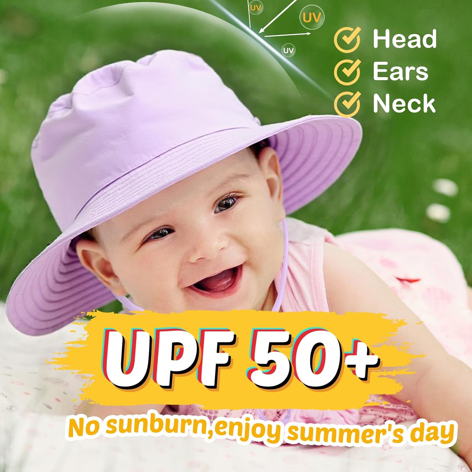 • PREMIUM MATERIAL: The baby sun hat is made of high quality polyester fabric, soft,quick-drying,skin friendly and breathable. The toddler sun hat with UPF 50+ UV sun protection keeps baby head cool and comfortable in hot summer.The baby bucket hat is convenient for your child to wash frequently and to match for different clothes