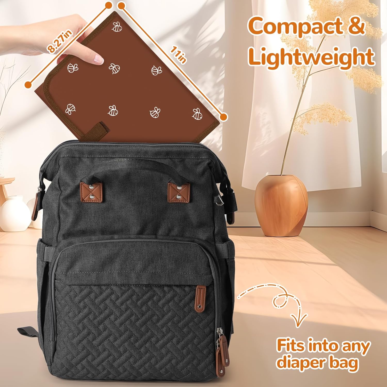 Portable Diaper Changing Pad, Waterproof Baby Changing Mat, Foldable Travel Baby Changing Station, Newborn Essential Baby Shower Registry Gift (Brown-Bee)