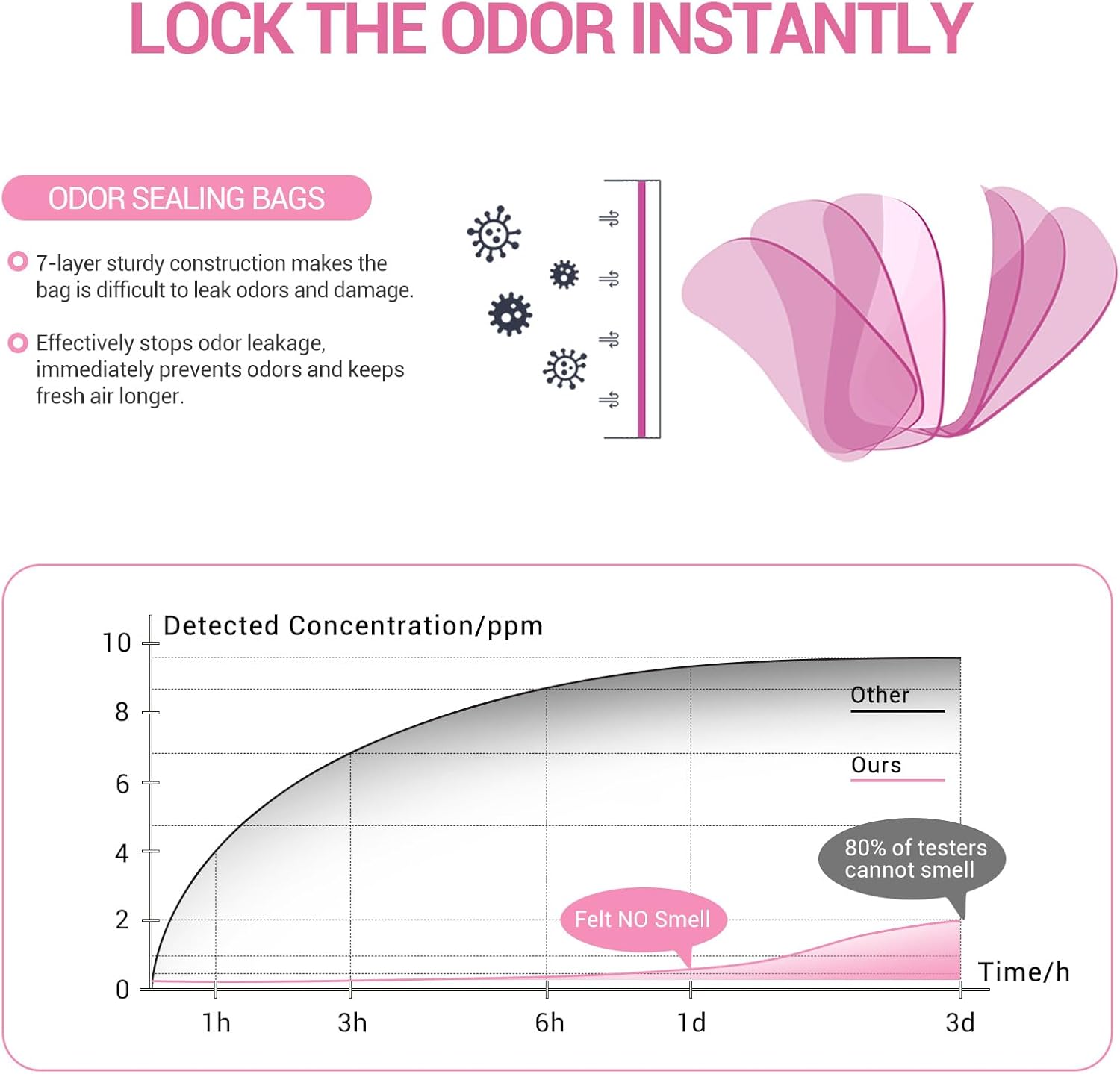 • Odor Control with 7-Layer Barrier: Crafted with advanced 7-layer odor barrier technology, these diaper disposal bags help seal in unpleasant smells for up to 3–5 days. Unscented and highly effective, they keep your nursery and surroundings fresh and clean