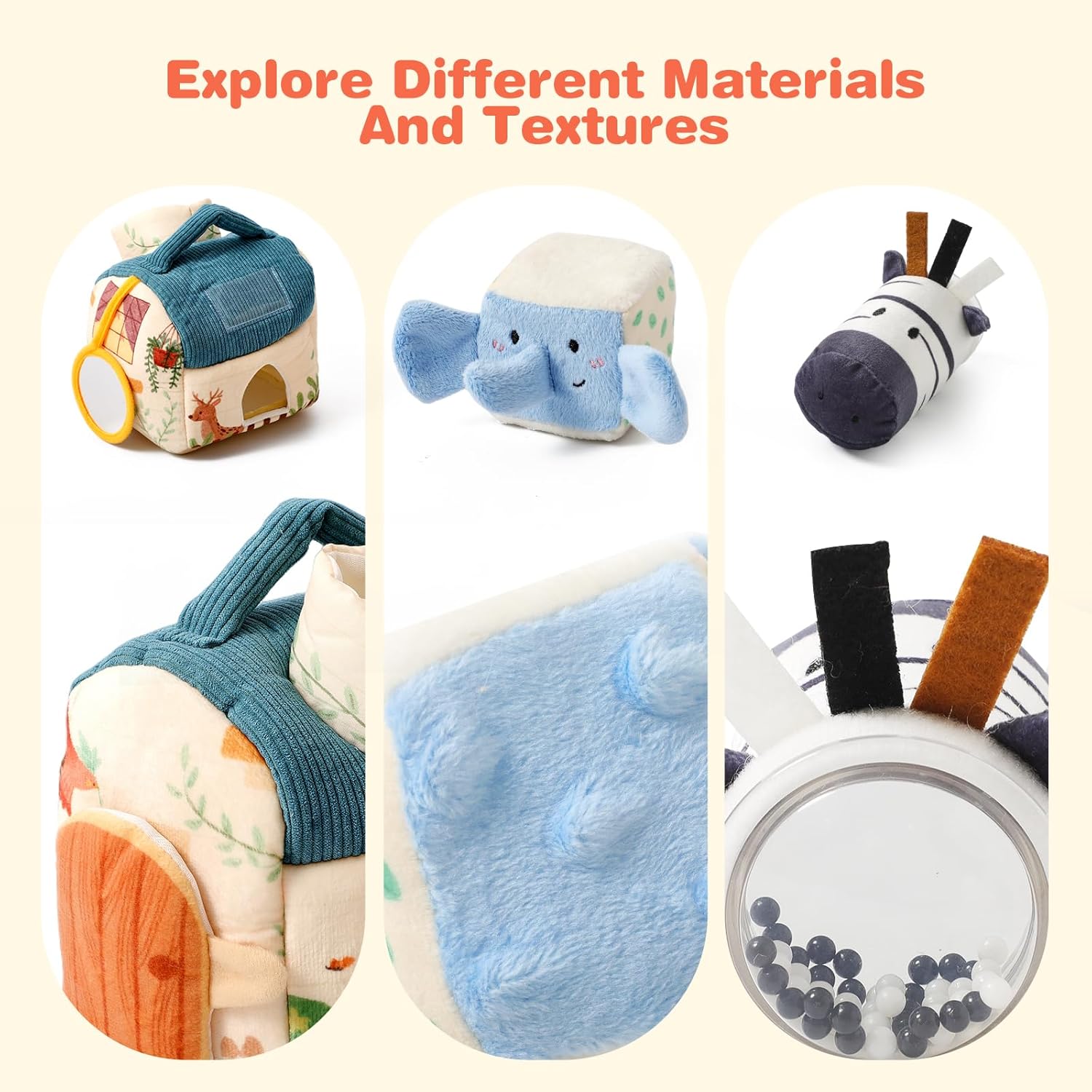 • SAFE, DURABLE & IDEAL GIFT: Our toys have passed CPC safety certification. Crafted from soft woven cloth, with a soft mirror feature. All parts are made of gentle materials, ensuring no sharp parts to harm your baby during play. Beyond safety, the diverse designs and play ways promote stage & skill development for babies aged 4- 18 months. Far superior to ordinary toys, it serves as an excellent sensory toy and perfect gift choice for birthdays and Christmas, bringing joy and growth to little ones