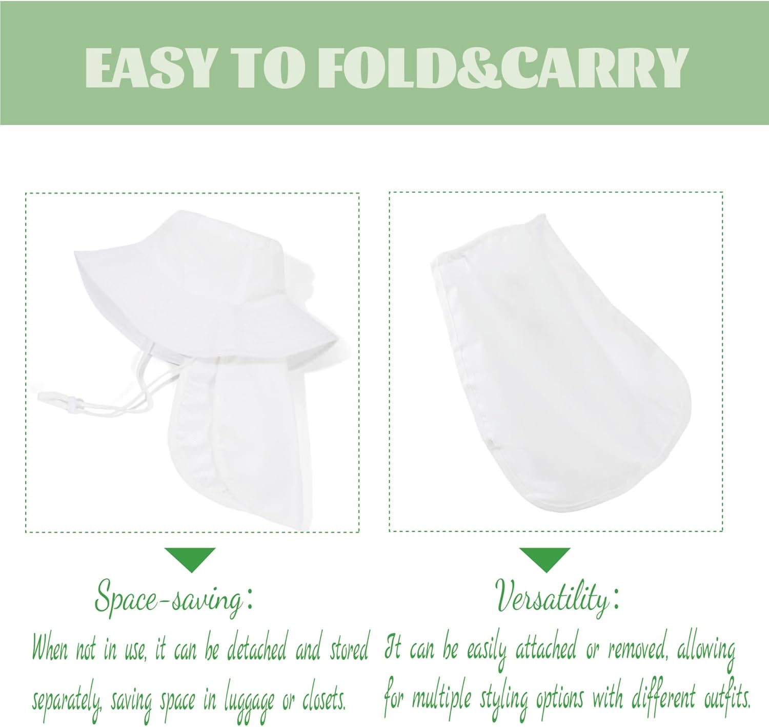 • Detachable Neck Flap for Extra Protection This bucket hat features a convenient detachable neck flap, providing added coverage to shield your baby's neck and shoulders from the sun and wind. Easily remove it when not needed for a classic bucket hat look.