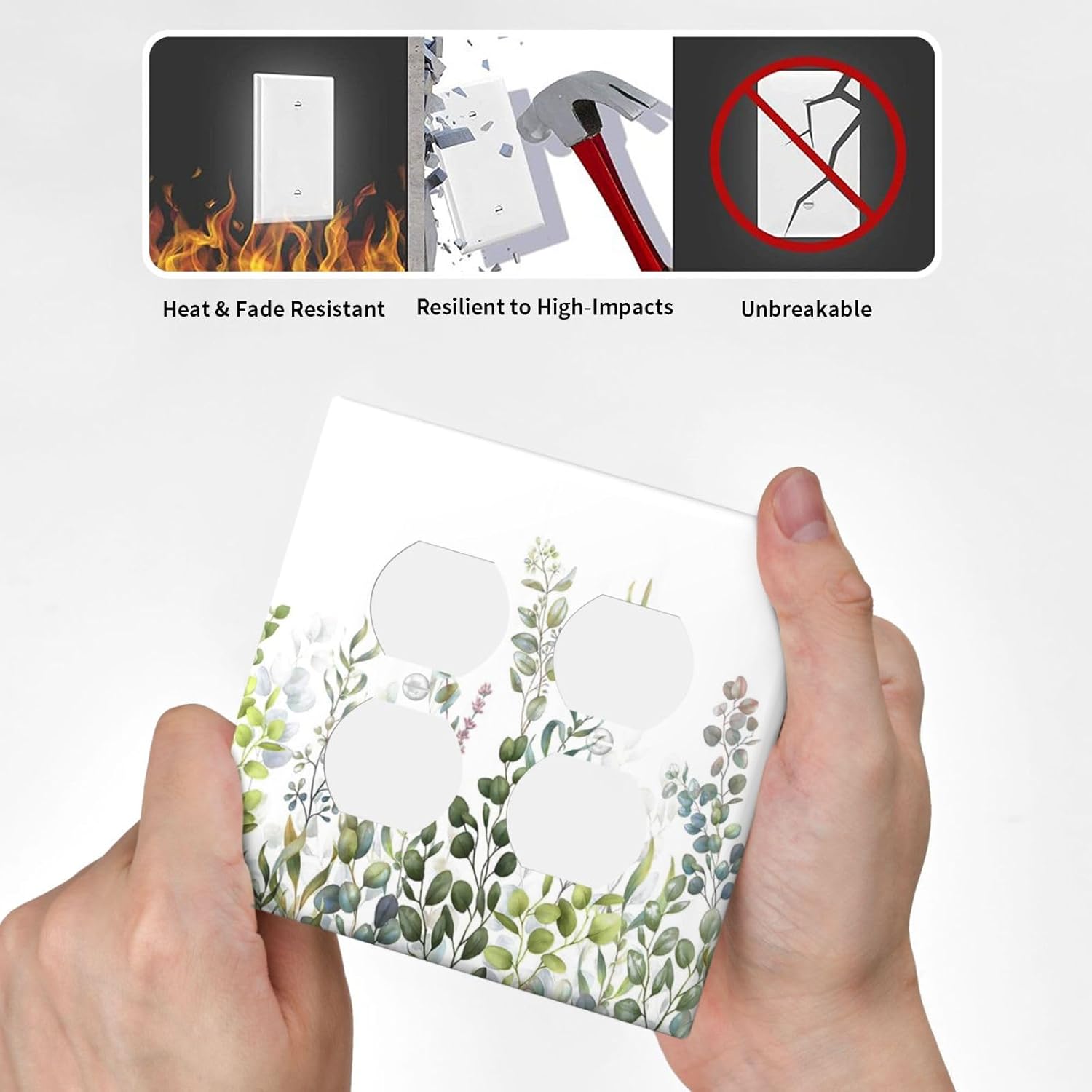 Green Eucalyptus Leaf Plant Herbs Springnature Outlet Covers 2 Gang Double Duplex Decorative Light Switch Covers Electrical Wallplates Socket Faceplate for Bed Room Living Room Decor