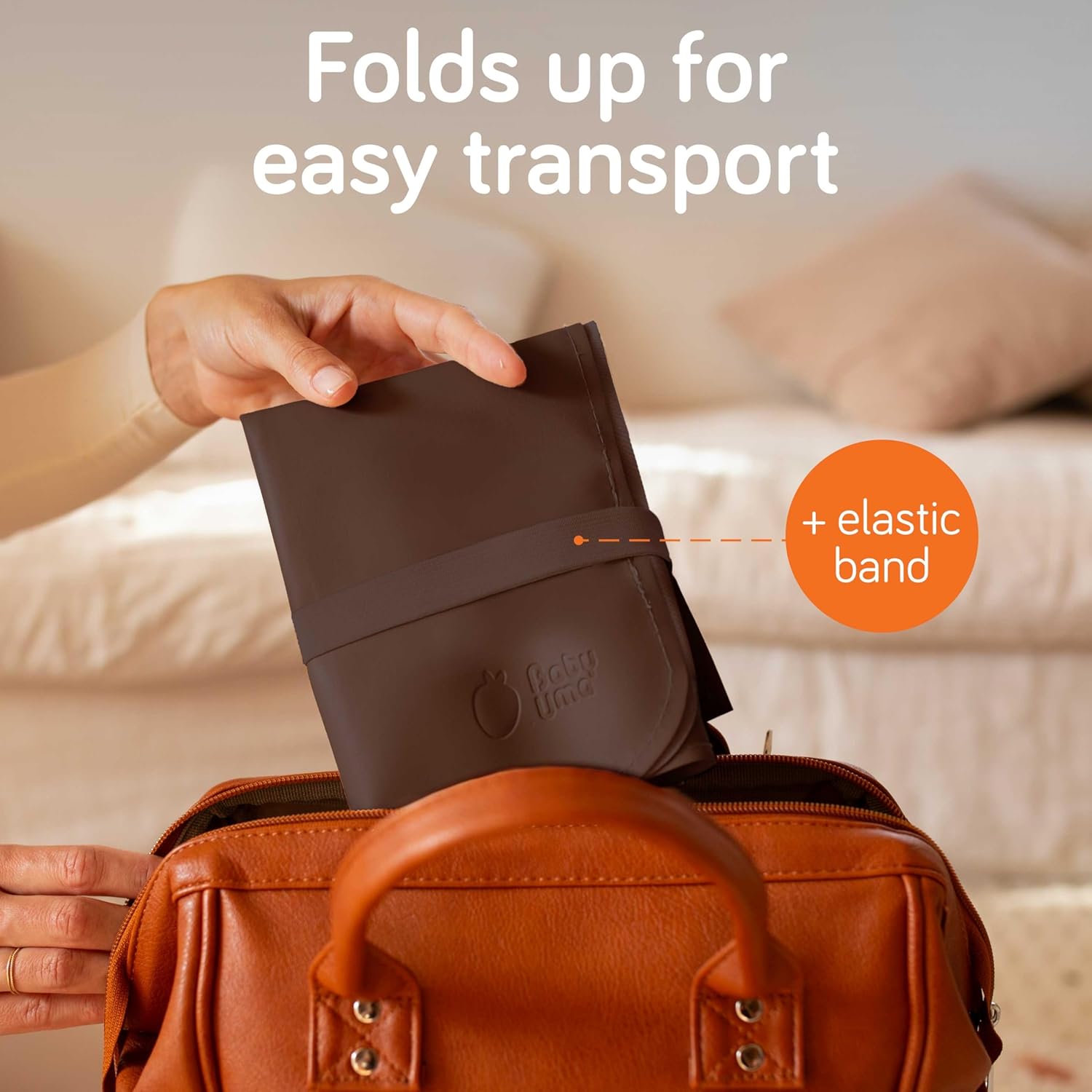 Baby Uma Vegan Leather Baby Changing Mat - Waterproof & Wipeable Changing Pad, XL for Growing Babies, Non-Toxic, Lead-Free & Phthalate-Free, Folds up for Easy Transport, 30″ x 16″ (Dark Brown)