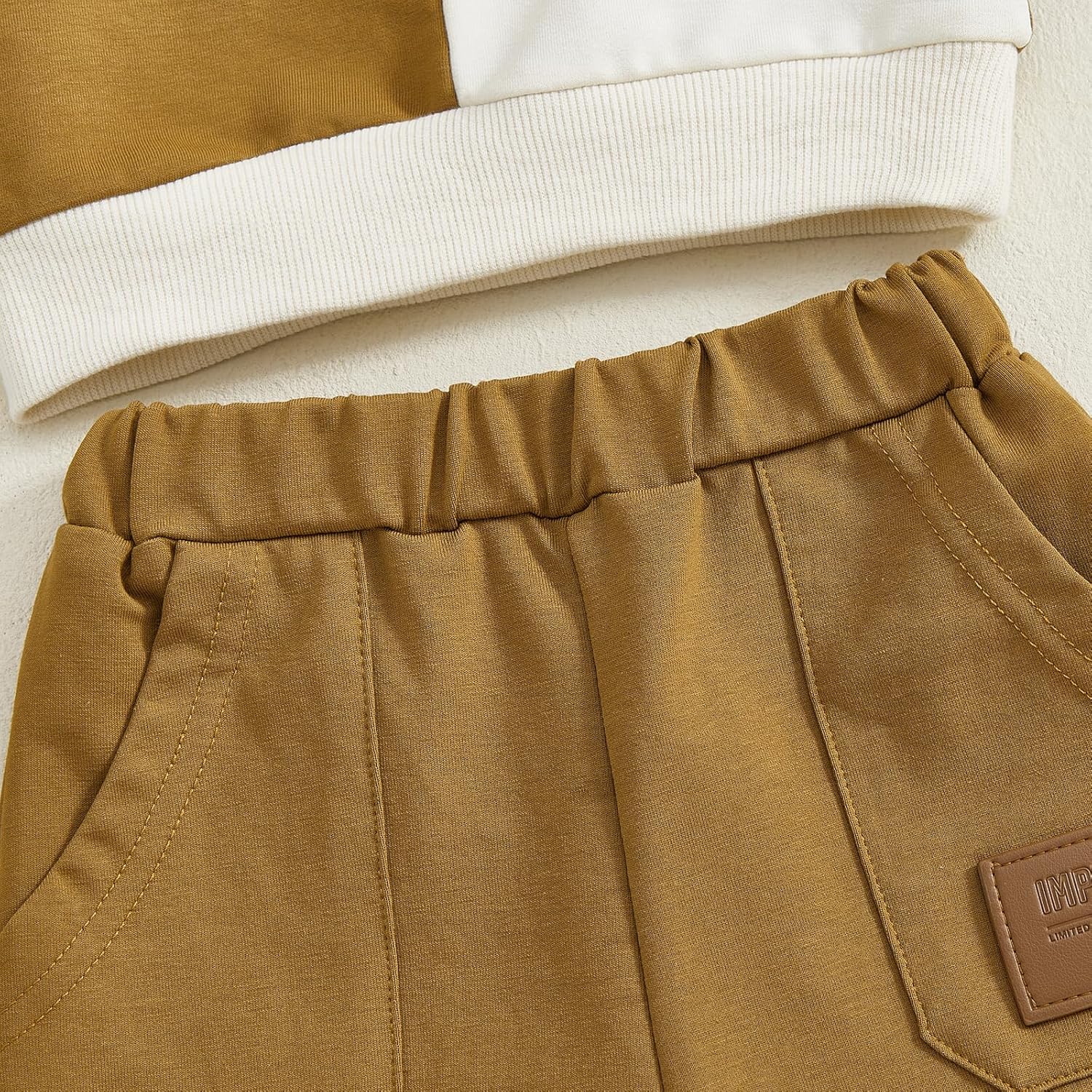 • Design: Toddler boys casual 2pcs outfit sets, color block long sleeve crew neck pocket pullover sweatshirt jumper tops, drawstring casual long pants joggers, toddler baby boy sweatsuit, cute toddler boy fall clothes.