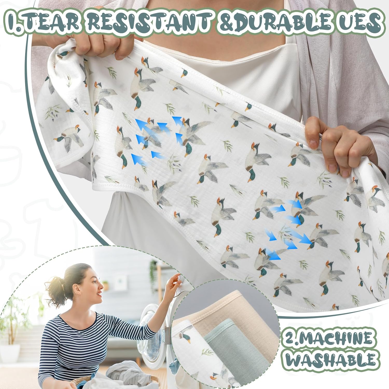 3 Pcs Changing Pad Liners Fits in Peanut Shape Changing Pad Waterproof Diaper Mats Organic Cotton Peanut Mats are Warm on a Baby's Back, Washable Reusable (Mallard Duck,Flaxen)